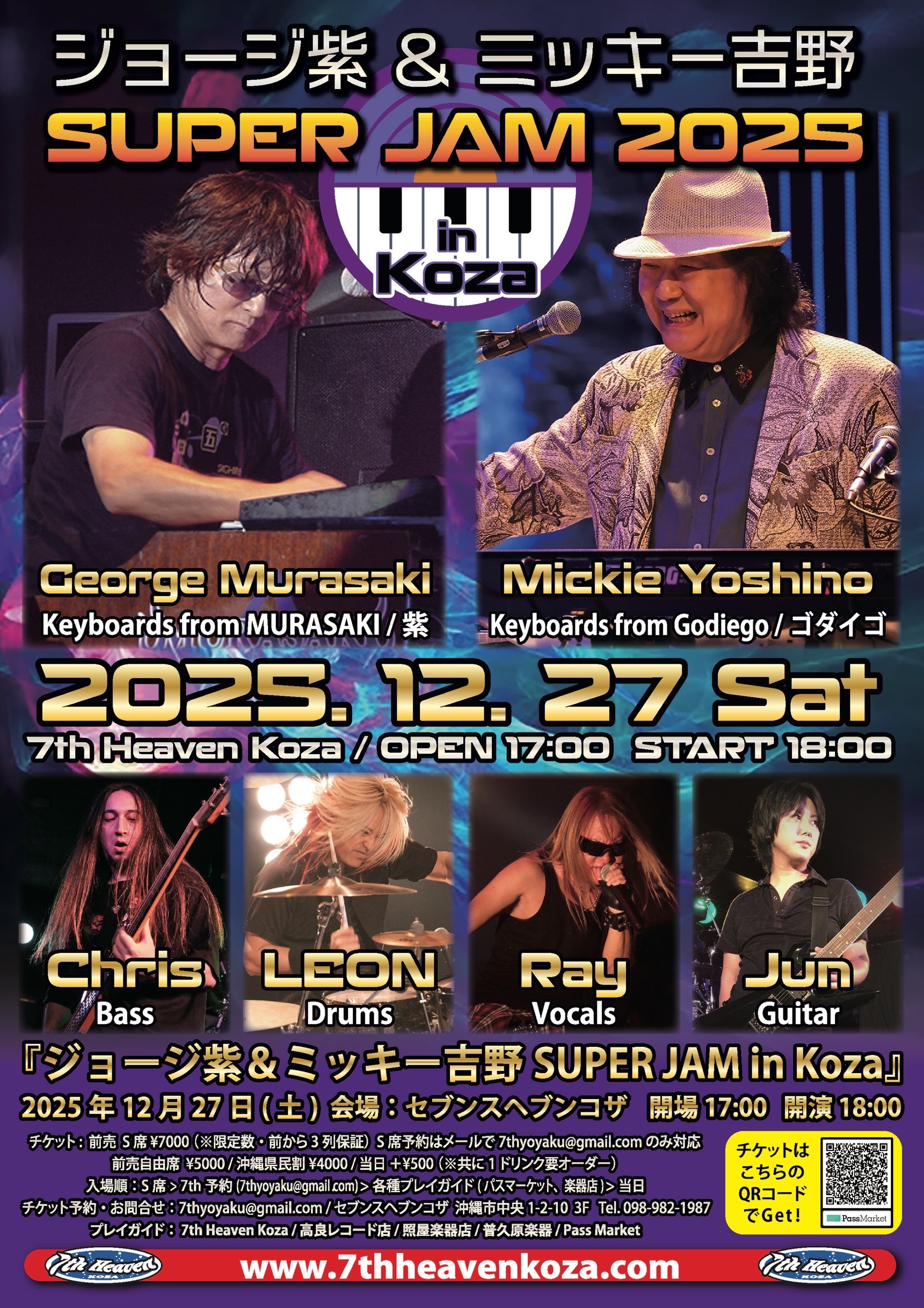 Two legendary Japanese keyboard masters come together for one explosive night in Okinawa. George Murasaki of MURASAKI and Mickie Yoshino of Godiego headline SUPER JAM in Koza 2025, delivering a high-energy collaboration packed with rock history, virtuosity, and raw groove.